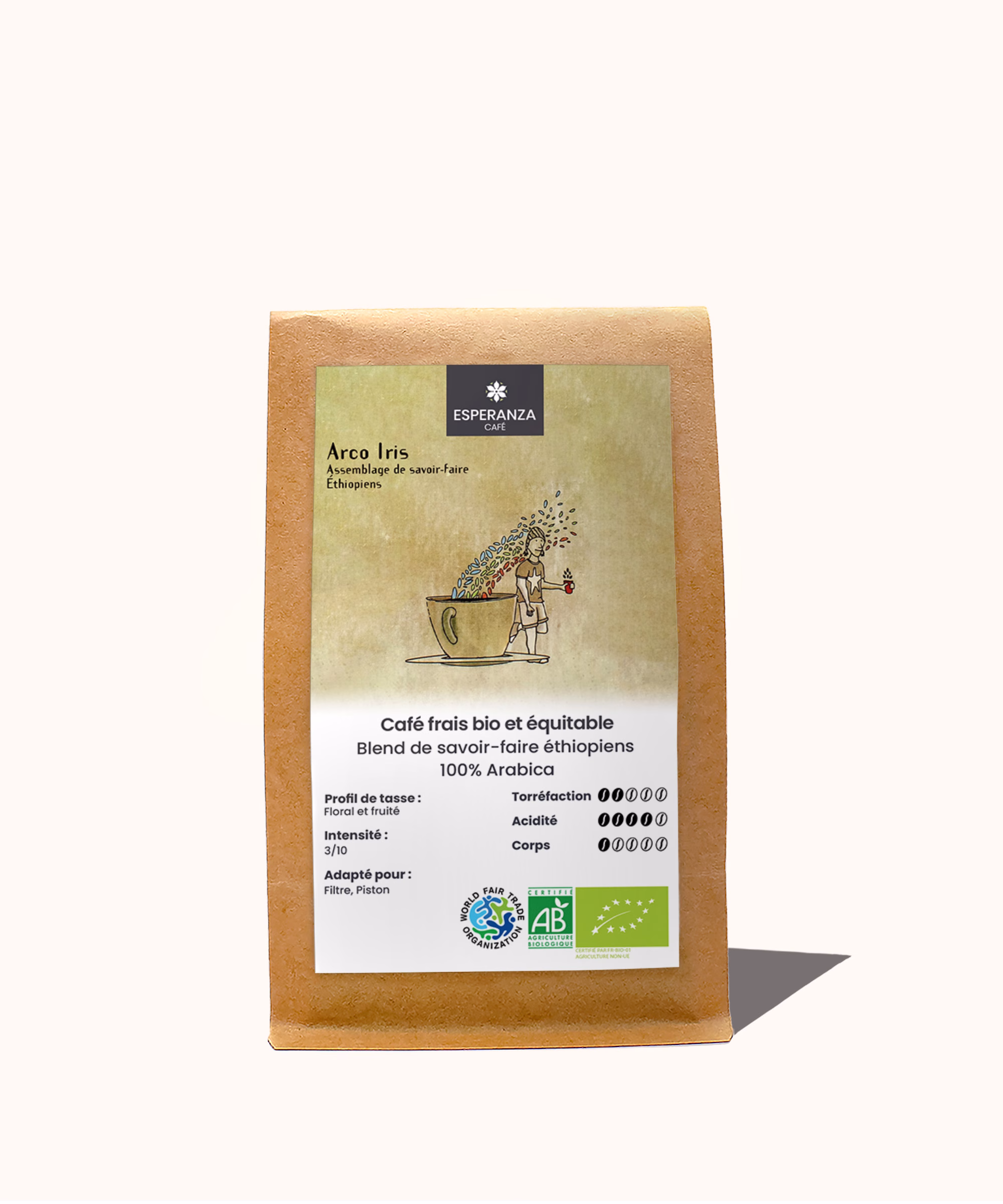 70% Ethiopie (Shilicho coop) voie humide, 30% Ethiopie (Taramesa coop) naturel.