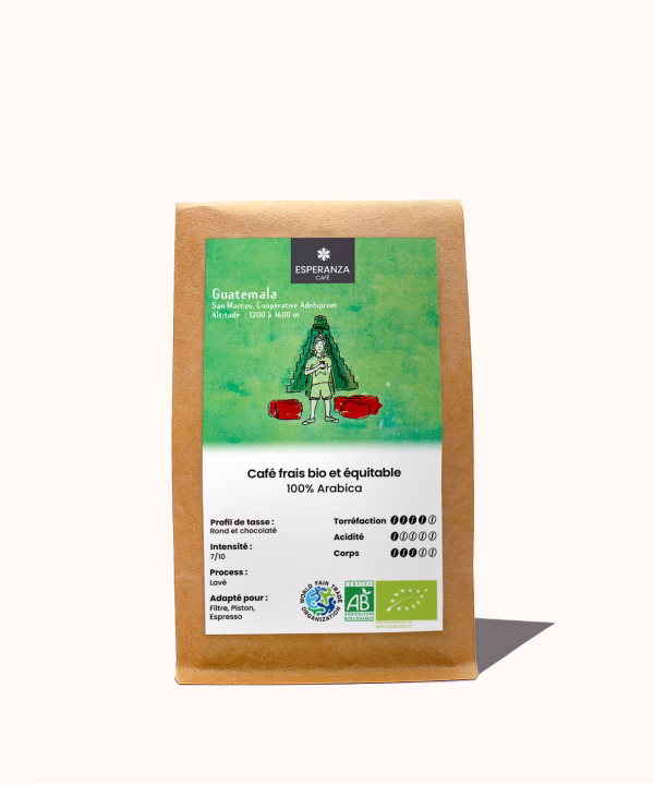 le label Guaranteed Fair Trade. Cette certification mondialement reconnue valide l’ensemble d’un processus et un engagement sans faille auprès de tous nos partenaires pour importer et torréfier du café de spécialité 100% bio et équitable.